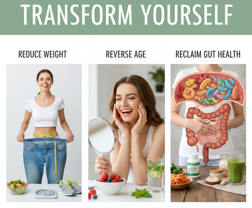 REDUCE WEIGHT- REVERSE AGE- RECLAIM GUT HEALTH.